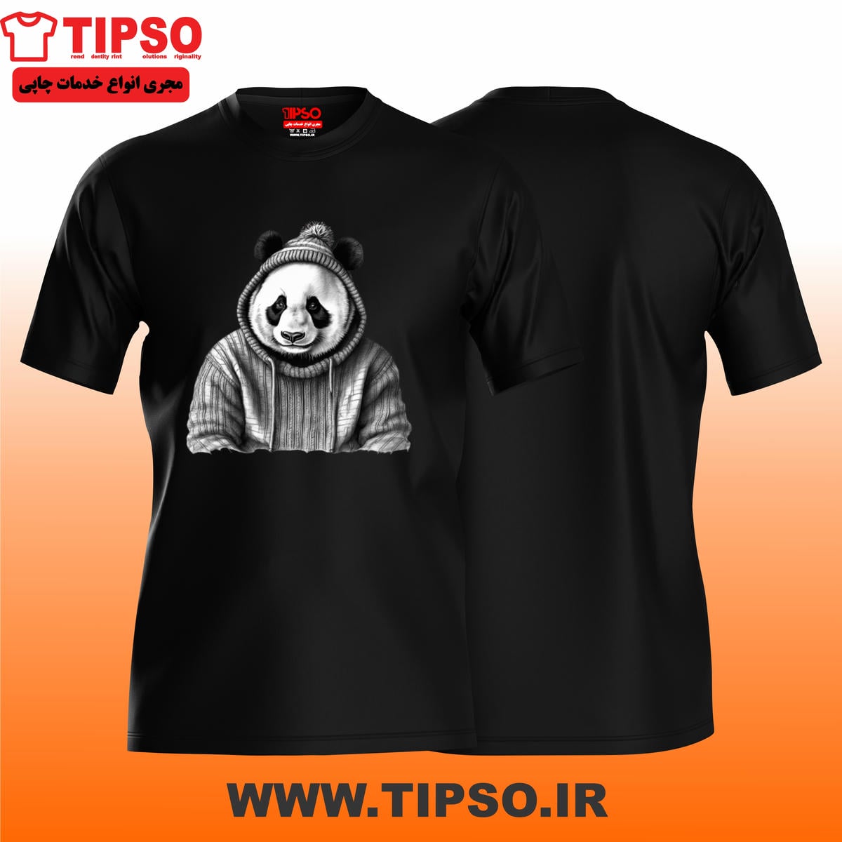 خانه البسه تیشرت یقه گرد 🐼 تیشرت مشکی طرح “Panda Hoodie” – پاندا هودی | چاپ DTF باکیفیت