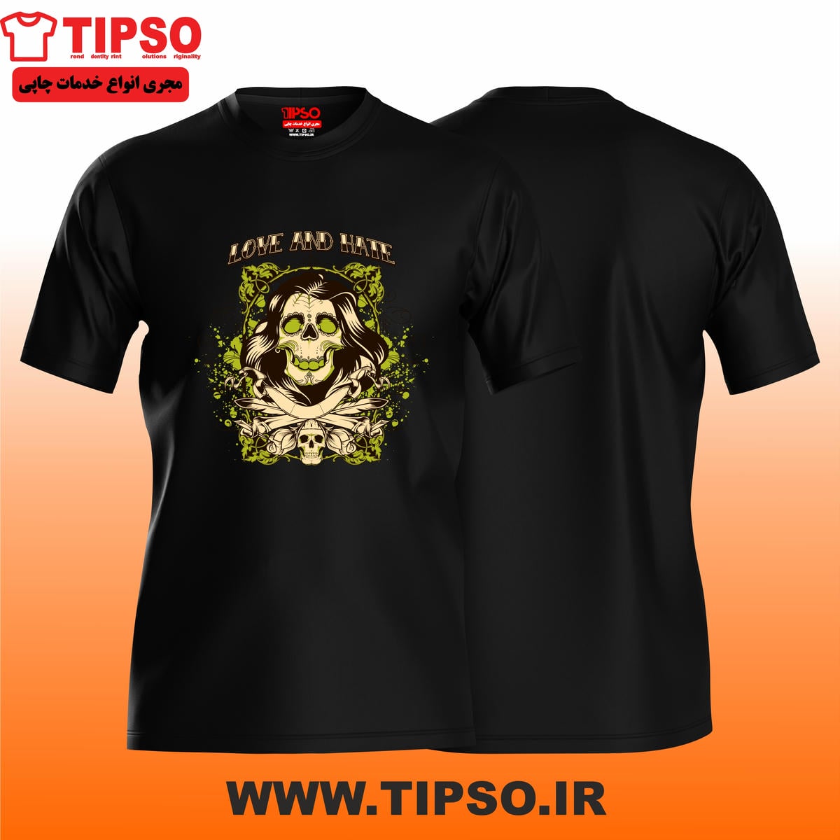💀 تیشرت مشکی طرح “Love and Hate” – عشق و نفرت | چاپ DTF باکیفیت