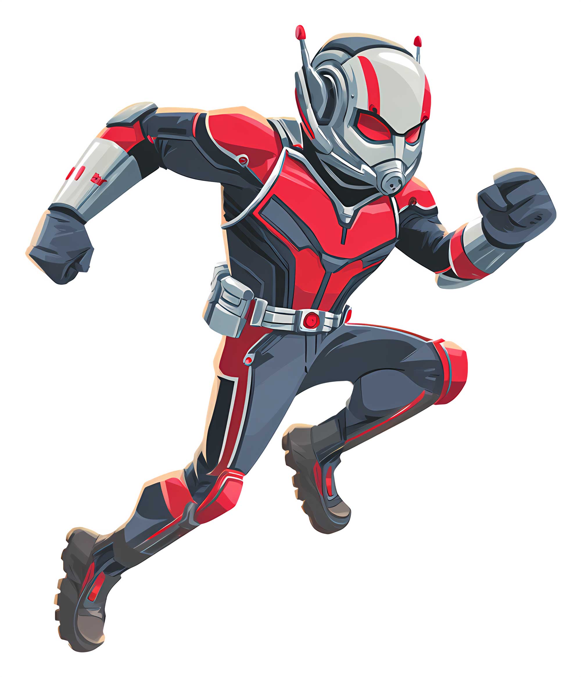 این طرح شامل آنت من (Ant-Man) در حالت دویدن با لباس قرمز، مشکی و نقرهای است. طراحی دقیق با رنگهای قرمز، مشکی و نقرهای، همراه با ماسک و آنتنهای سر، مناسب برای چاپ روی تیشرت، کلاه، کیف و لباس بچهگانه.